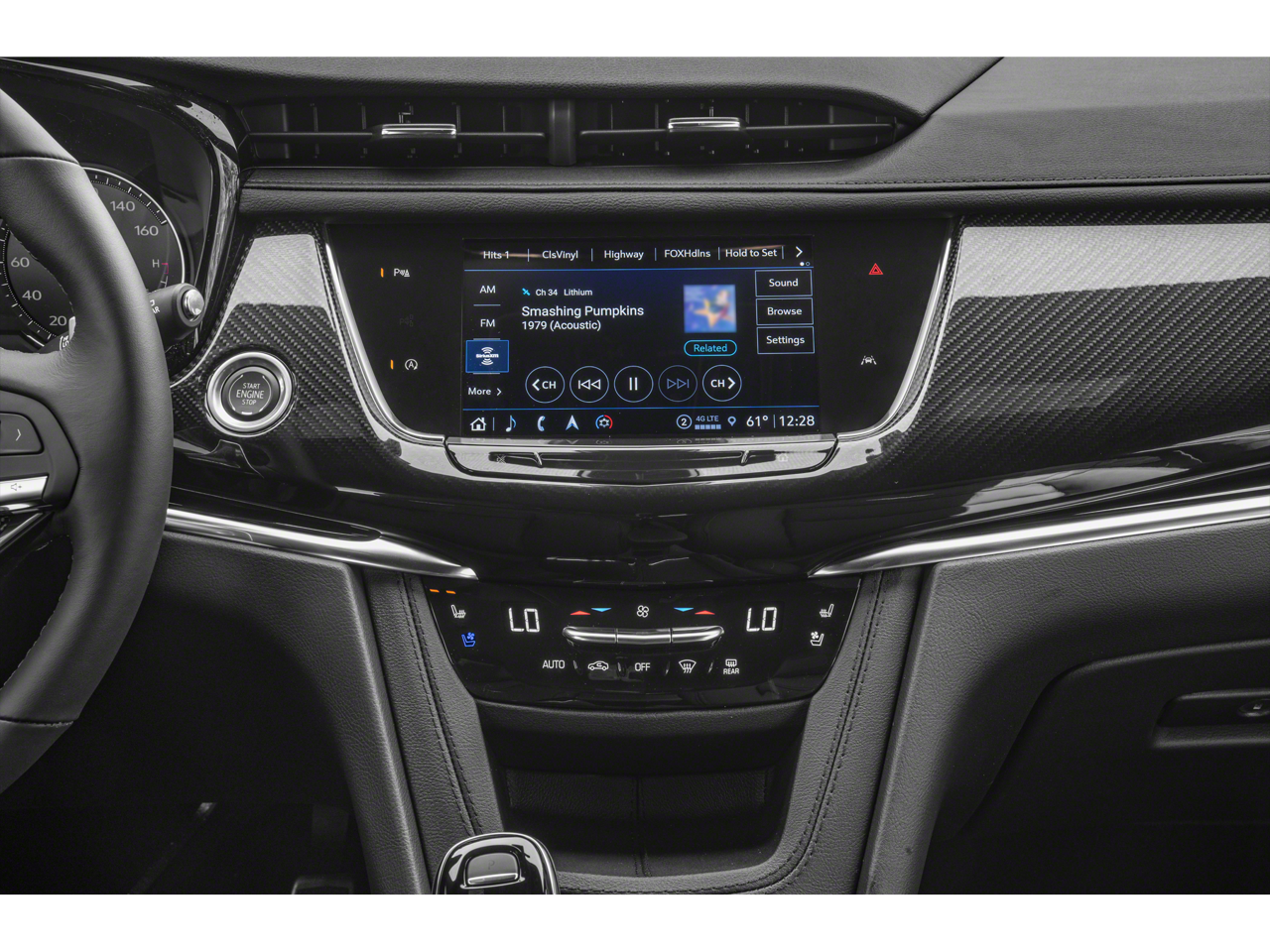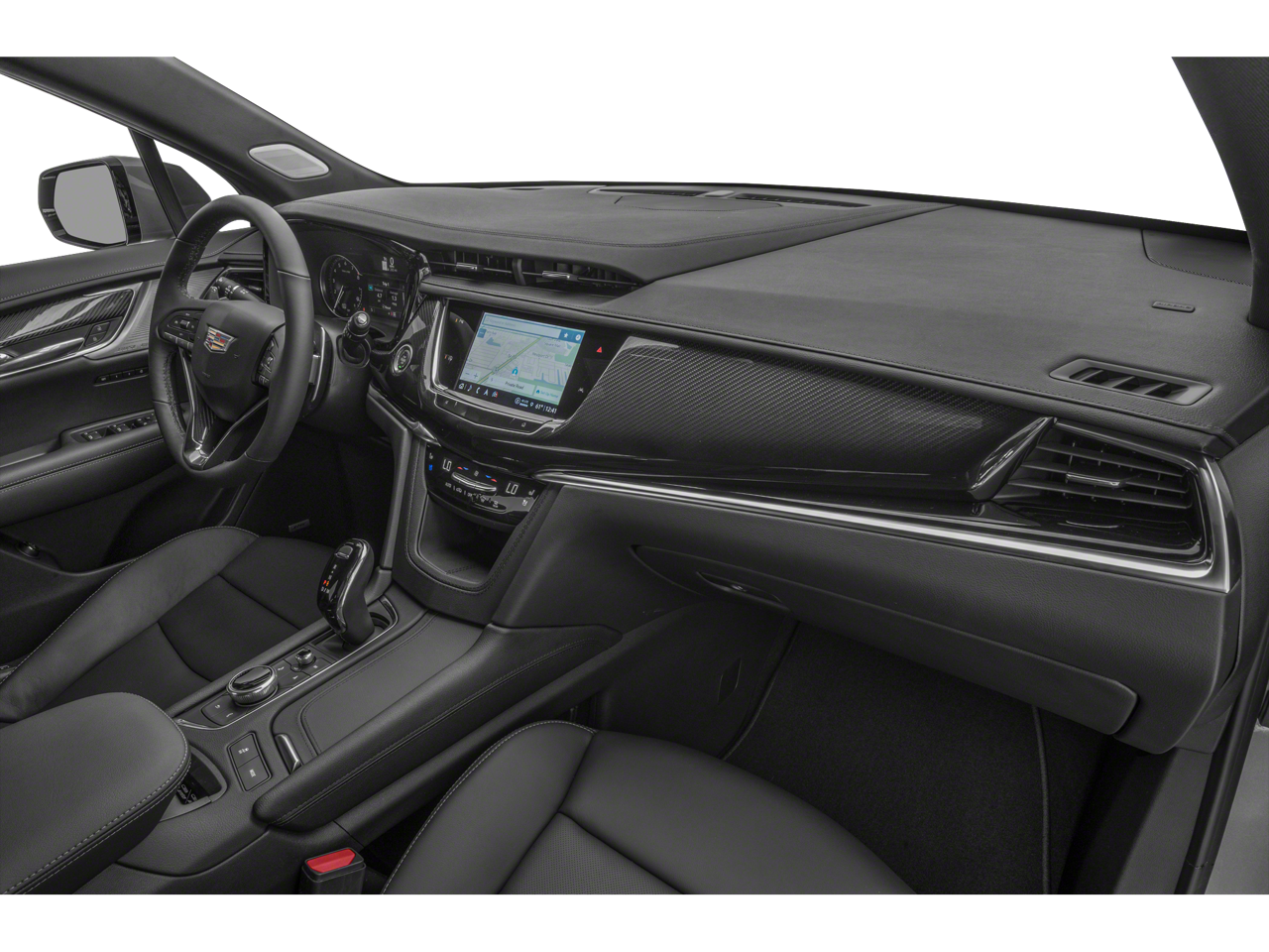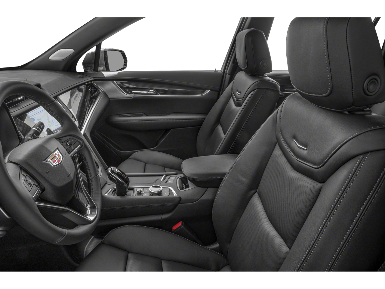 Interior Protection Package (LPO) (All-Weather Floor Mats and Integrated Cargo Liner (LPO)), Radio: Cadillac User Experience w/Embedded Nav (Bose Performance Series Audio System, SiriusXM w/360L, and Wireless Apple CarPlay/Wireless Android Auto), 14 Speakers, 2-Way Power Driver Lumbar Control Seat Adjuster, 2-Way Power Passenger Lumbar Control Seat Adjuster, 3rd row seats: split-bench, 4-Wheel Disc Brakes, 8-Way Power Driver Seat Adjuster, ABS brakes, Adaptive suspension, Air Conditioning, Alloy wheels, AM/FM radio: SiriusXM with 360L, Audio memory, Auto High-beam Headlights, Auto tilt-away steering wheel, Auto-dimming door mirrors, Auto-dimming Rear-View mirror, Automatic Emergency Braking, Automatic Stop/Start w/Disable, Automatic temperature control, Body-Color Door Handles, Brake assist, Bumpers: body-color, Compass, Delay-off headlights, Driver & Front Passenger Heated Seats, Driver door bin, Driver vanity mirror, Dual Driver Info Center Display Gauge Cluster, Dual front impact airbags, Dual front side impact airbags, Electronic Stability Control, Emergency communication system: OnStar and Cadillac connected services capable, Four wheel independent suspension, Front & Rear Park Assist, Front anti-roll bar, Front Bucket Seats, Front Center Armrest, Front dual zone A/C, Front reading lights, Fully automatic headlights, Garage door transmitter, Genuine wood dashboard insert, Genuine wood door panel insert, Heated door mirrors, Heated front seats, Heated rear seats, Heated steering wheel, Illuminated entry, Inside Rear-View Auto-Dimming Mirror, Knee airbag, Leather Seating Surfaces w/Mini-Perforated Inserts, Leather steering wheel, Low tire pressure warning, Memory seat, Navigation System, Occupant sensing airbag, Outside temperature display, Overhead airbag, Overhead console, Panic alarm, Passenger door bin, Passenger vanity mirror, Performance Suspension, Power door mirrors, Power driver seat, Power Liftgate, Power moonroof: UltraView, Power passenger seat, Power steering, Power windows, Radio data system, Rain sensing wipers, Rear air conditioning, Rear anti-roll bar, Rear reading lights, Rear seat center armrest, Rear window defroster, Rear window wiper, Remote keyless entry, Security system, Speed control, Speed-sensing steering, Split folding rear seat, Spoiler, Steering wheel memory, Steering wheel mounted audio controls, Tachometer, Teen Driver, Telescoping steering wheel, Tilt steering wheel, Traction control, Trip computer, Turn signal indicator mirrors, Variably intermittent wipers, Ventilated Driver & Front Passenger Seats, Ventilated front seats, Voltmeter, and Wheels: 20" 12-Spoke Diamond Cut Alloy.