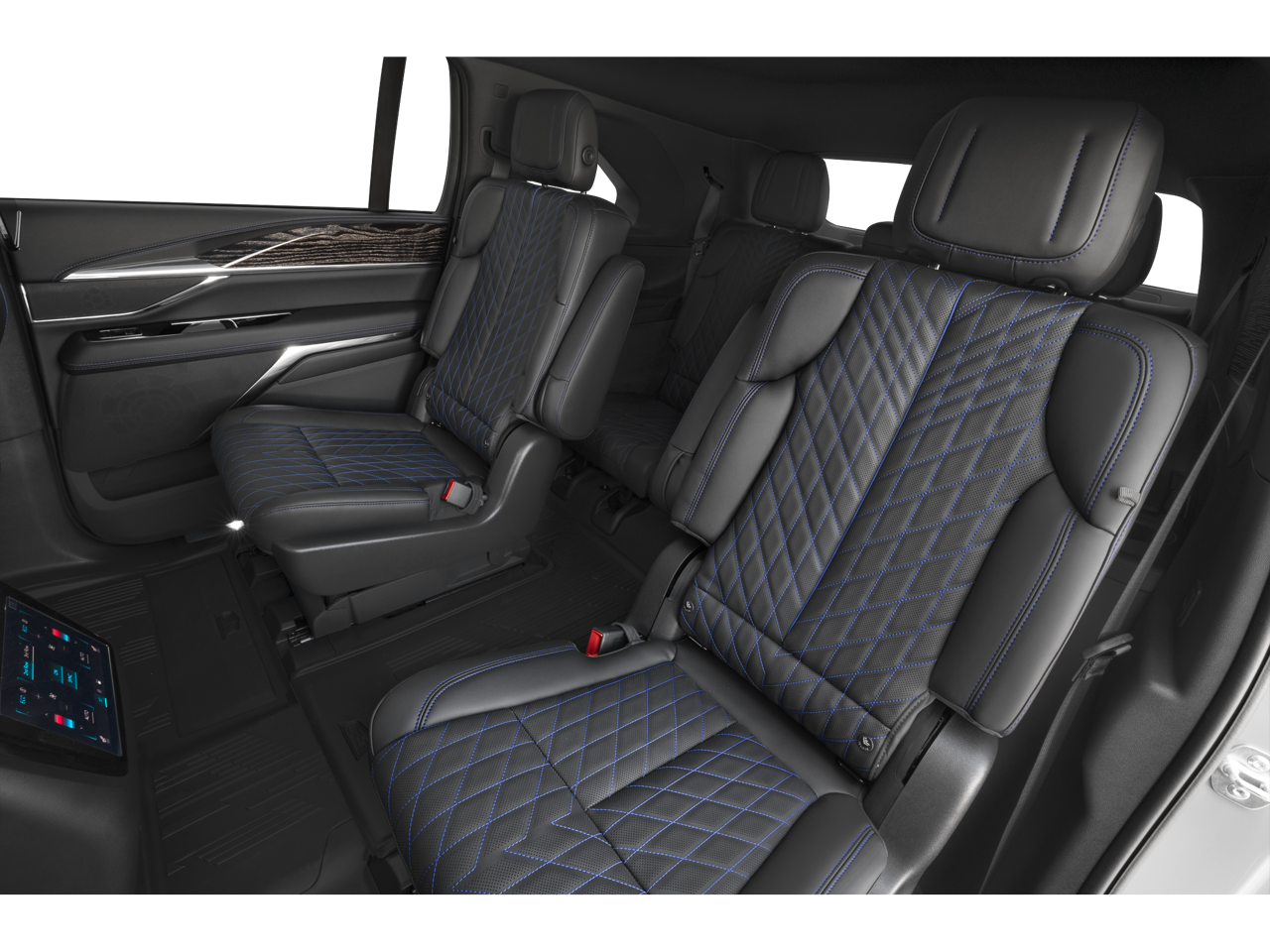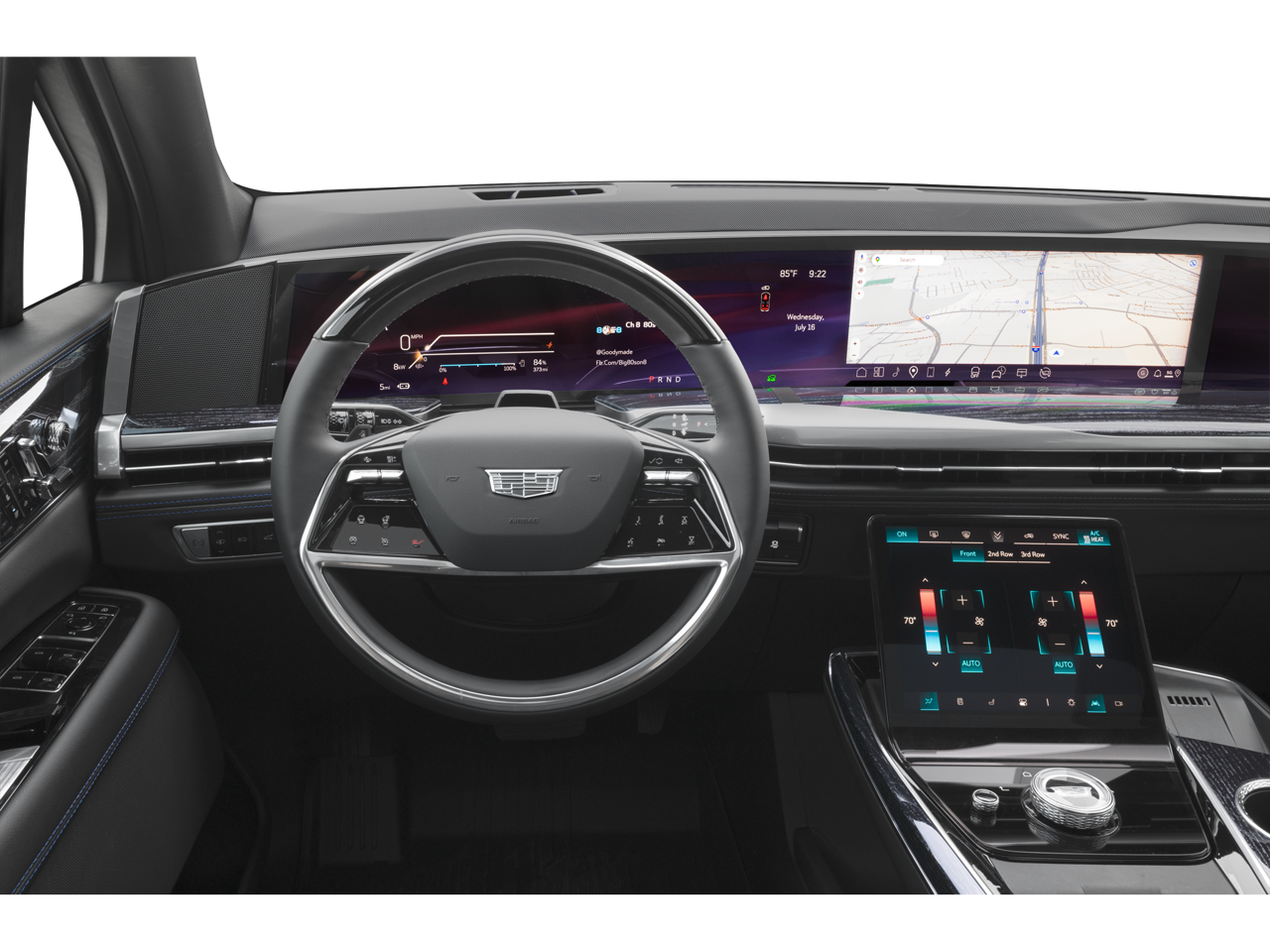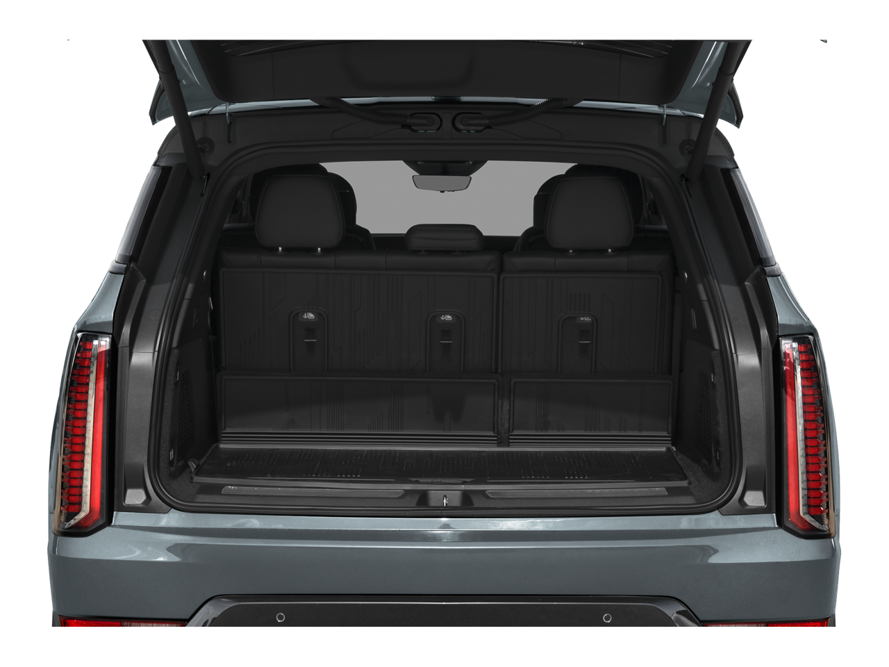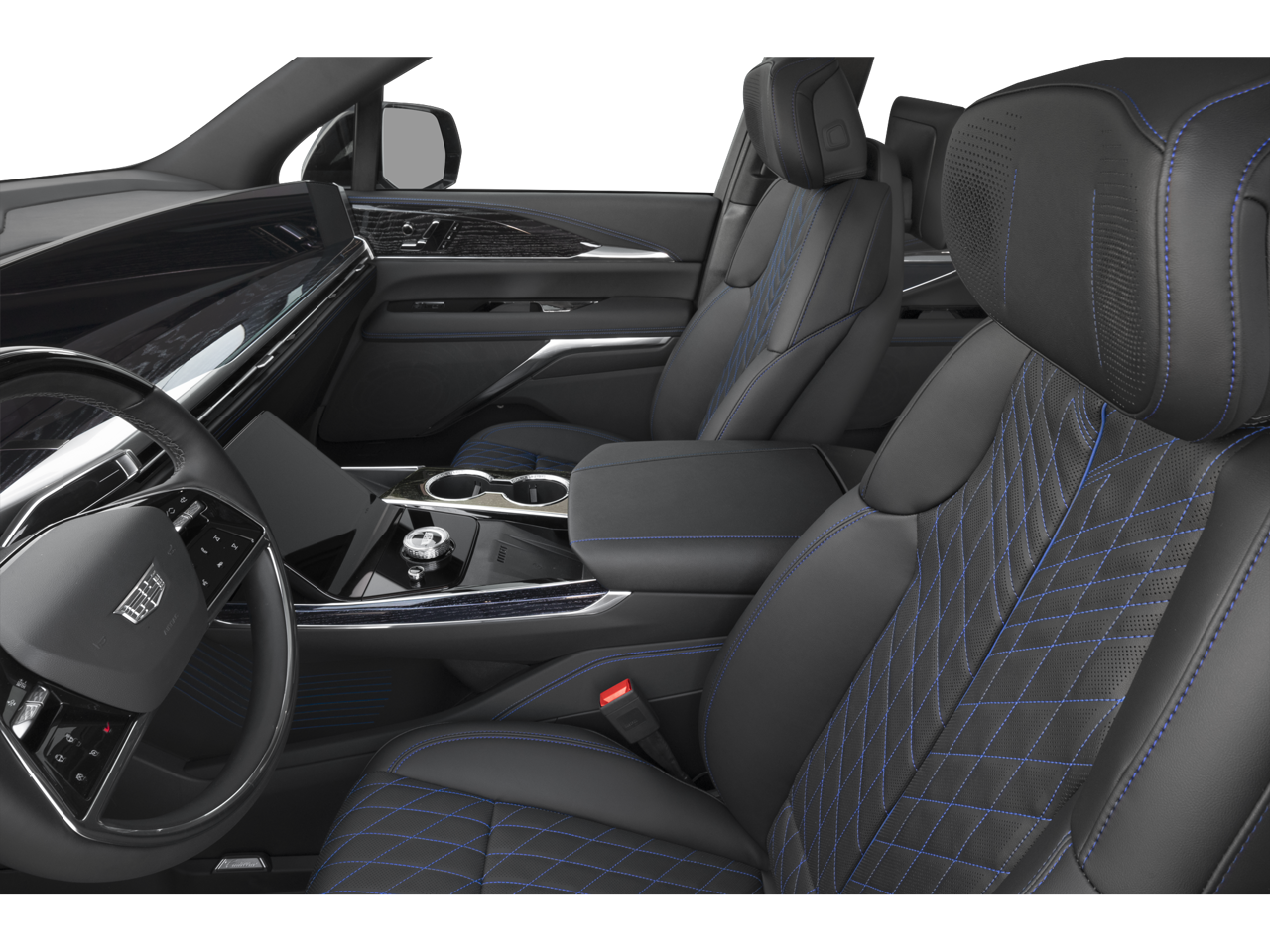 Floor Liner Package (Contoured Floor Liners and Integrated Cargo Liner), Preferred Equipment Group 1SF, 21 Speakers, 3rd row seats: split-bench, 4-Way Power Driver Lumbar Seat Adjuster, 4-Way Power Front Passenger Lumbar Seat Adjuster, 4-Wheel Disc Brakes, 8-Way Power Driver Seat Adjuster, 8-Way Power Front Passenger Seat Adjuster, ABS brakes, Adaptive suspension, Air Conditioning, AKG Studio 21-Speaker Audio System, Alloy wheels, AM/FM radio: SiriusXM with 360L, Audio memory, Auto High-beam Headlights, Auto-dimming door mirrors, Auto-dimming Rear-View mirror, Auto-leveling suspension, Automatic temperature control, Bluetooth® Headphones by AKG, Brake assist, Bumpers: body-color, Compass, Console Refrigerator, Delay-off headlights, Driver door bin, Driver Memory, Driver vanity mirror, Dual front impact airbags, Dual front side impact airbags, Electronic Stability Control, Emergency communication system: OnStar and Cadillac connected services capable, Four wheel independent suspension, Front anti-roll bar, Front Bucket Seats, Front Center Armrest, Front dual zone A/C, Front reading lights, Fully automatic headlights, Garage door transmitter, Google Built-in, Heads-Up Display, Heated door mirrors, Heated Driver and Front Passenger Seats, Heated front seats, Heated rear seats, Heated steering wheel, HVAC memory, Illuminated entry, Inteluxe Seat Trim, Knee airbag, Low tire pressure warning, Magnetic Ride Control Suspension, Memory seat, Navigation system: Google Automotive Services Capable, Occupant sensing airbag, Outside temperature display, Overhead airbag, Overhead console, Panic alarm, Passenger door bin, Passenger vanity mirror, Power door mirrors, Power driver seat, Power Liftgate, Power passenger seat, Power steering, Power windows, Radio data system, Radio: Infotainment Experience, Rain sensing wipers, Rear air conditioning, Rear anti-roll bar, Rear dual zone A/C, Rear reading lights, Rear Seat Entertainment System, Rear window defroster, Rear window wiper, Reconfigurable Full-Color Head-Up Display, Remote keyless entry, Security system, SiriusXM with 360L Trial Subscription, Speed control, Speed-sensing steering, Split folding rear seat, Spoiler, Steering wheel mounted audio controls, Telescoping steering wheel, Tilt steering wheel, Traction control, Trip computer, Turn signal indicator mirrors, Variably intermittent wipers, Ventilated front seats, and Wheels: 22" 10-Spoke Alloy with Mask and Polish.