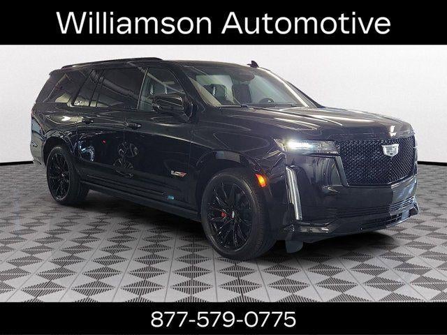 **REAR ENTERTAINMENT**, **LEATHER**, **1 OWNER CLEAN CARFAX, **NAVIGATION**, **SUNROOF / MOONROOF**, **FACTORY CERTIFIED**, Fully Detailed, Cadillac Certified Pre-Owned Certified, 1.5 kW Heater/Defrost Air System, 16.9" Diagonal OLED Infotainment Screen, 2-Presets Memory For Driver Seat Adjuster, 3 Years of OnStar & Connected Services Plan, 3.23 Axle Ratio, 3rd row seats: split-bench, 4-Way Power Driver Lumbar Seat Adjuster, 4-Way Power Front Passenger Lumbar Seat Adjuster, 4-Wheel Disc Brakes, 8-Way Power Driver Seat Adjuster, 8-Way Power Front Passenger Seat Adjuster, A/V remote, ABS brakes, Adaptive Cruise Control, Adaptive suspension, Air Conditioning, Air Ride Adaptive Suspension, AKG Studio Reference 36-Speaker Audio System, Alloy wheels, AM/FM radio: SiriusXM with 360L, Apple CarPlay/Android Auto, Audio memory, Auto High-beam Headlights, Auto tilt-away steering wheel, Auto-dimming door mirrors, Automatic Seat Belt Tightening, Automatic temperature control, Body-Color Door Handles, Brake assist, Bumpers: body-color, Compass, Delay-off headlights, Door auto-latch, Door Lock & Latch Shields, Driver door bin, Driver vanity mirror, Dual front impact airbags, Dual front side impact airbags, Electronic Limited-Slip Differential, Electronic Stability Control, Emergency communication system: OnStar and Cadillac connected services capable, Engine Block Heater, Enhanced Automatic Emergency Braking, Enhanced Automatic Parking Assist, Exterior Parking Camera Rear, Floor Console w/Covered Storage, Four wheel independent suspension, Front anti-roll bar, Front Auxiliary 12-volt Power Outlet, Front Bucket Seats, Front Center Armrest w/Storage, Front dual zone A/C, Front reading lights, Full Semi-Aniline Leather Seat Trim, Fully automatic headlights, Garage door transmitter, Genuine wood console insert, Genuine wood dashboard insert, Genuine wood door panel insert, Glass Breakage Sensor, Gloss Black Escalade Nameplate (LPO), HD Radio, Headphones, Heads-Up Display, Heated & Ventilated Driver & Front Passenger Seats, Heated door mirrors, Heated Driver & Front Passenger Seats, Heated front seats, Heated rear seats, Heated steering wheel, Hitch Guidance w/Hitch View, Illuminated entry, Illuminating Front & Rear Sill Plates, Integrated Trailer Brake Controller, Leather steering wheel, Low tire pressure warning, Magnetic Ride Control Suspension, Memory seat, Monochrome Cadillac Emblems (LPO), Navigation System, Not Equipped w/2nd Row Express-Up Window Control, Occupant sensing airbag, Onyx Package (LPO), Outside temperature display, Overhead airbag, Overhead console, Panic alarm, Passenger door bin, Passenger vanity mirror, Platinum Interior Trim, Power door mirrors, Power driver seat, Power Liftgate, Power Lumbar Massage Driver Seat, Power Lumbar Massage Front Passenger Seat, Power moonroof, Power Panoramic Tilt-Sliding Sunroof, Power passenger seat, Power steering, Power windows, Power-Retractable Assist Steps, Preferred Equipment Group 1SH, Radio data system, Radio: AM/FM w/Navigation, Rain sensing wipers, Rear air conditioning, Rear anti-roll bar, Rear audio controls, Rear Camera Mirror, Rear Camera Mirror Washer, Rear Cross Traffic Alert, Rear reading lights, Rear Seat Entertainment System, Rear window defroster, Rear window wiper, Reconfigurable Full-Color Head-Up Display, Remote keyless entry, Reverse Automatic Braking, Running Board Assist Steps, Security system, SiriusXM w/360L, Smart Trailer Integration Indicator, Soft Closing Front & Rear Doors, Speed control, Split folding rear seat, Spoiler, Steering wheel memory, Steering wheel mounted audio controls, Super Cruise, Tachometer, Teen Driver, Telescoping steering wheel, Theft-Deterrent Alarm System, Tilt steering wheel, Touring Package, Traction control, Trailer Side Blind Zone Alert, Trip computer, Turn signal indicator mirrors, Variably intermittent wipers, Vehicle Inclination Sensor, Vehicle Interior Movement Sensor, Ventilated front seats, Vol